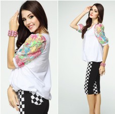 簡介:寬松休閑的白色T恤,加上鏤空繡花袖看上去非常的時尚,個性拼接設計將不同的面料拼接在一起別具一個,獨具個性,整體樣式設計不再單調,再搭配永恒經典的黑白配的五分褲,具有獨特的時尚,這樣的搭配看上去非常的舒服不會顯得突兀也不會太過平庸,這就是瑪莉夢娜休閑女裝最新設計的女裝,它以不一樣的視覺和設計給讓萬千女性走在時尚前沿。