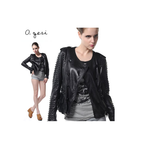 謳格詩鉚釘潮人機車款女裝皮衣 /