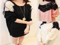 2014秋裝新款韓版一件代發(fā)女裝蕾絲勾花拼接三色長袖針織衫 /