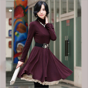 2014韓版新款時尚秋冬新款知性大擺針織瘦身打底連衣裙批發(fā) /
