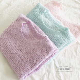 彼姿 秋冬新品 韓版寬松糖果色長毛絨馬海毛毛衣 女款打底針織衫 /