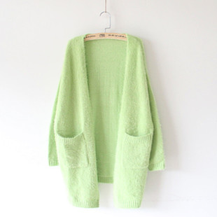 彼姿 韓版清新糖果色 馬卡龍百搭馬海毛寬松針織衫開衫 外套毛衣 /