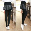 韓版拼接百褶皮裙褲假兩件套褲裙 保暖加絨加厚顯瘦女打底褲批發(fā) /