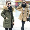2013秋冬裝新款女士軍綠大毛領棉衣中長款韓版冬裝外套女加厚棉襖 /