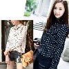 外貿(mào)款2013韓版新款復(fù)古 女裝波點(diǎn)雪紡衫襯衣打底長袖翻領(lǐng)襯衫 /