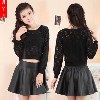 韓國正品代購春新款蕾絲衫 韓版短款長袖T恤 蕾絲花瓣鏤空打底衫 /