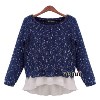 歐美明星款秋裝新品女裝寬松針織休閑拼接雪紡邊毛衣女 加厚批發 /