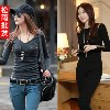 【快消匯】 純棉紐扣長袖T恤 修身圓領長袖 女裝 長袖打底衫批發 /