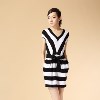 歐美正品2013夏新款黑白條紋V領收腰顯瘦品牌裙子加小歐美連衣裙 /