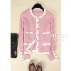 羊絨針織衫女開衫 小香風秋新款長袖毛衣外套春秋修身撞色羊絨衫 /