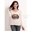 歐洲原單前短后長新款寬松毛衫紅唇手工亮片純羊絨衫圓領上衣外套 /