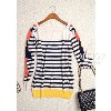 歐美風 法國原單條紋羊絨衫圓領動物鷹頭寬松型休閑毛衫出口羊絨 /