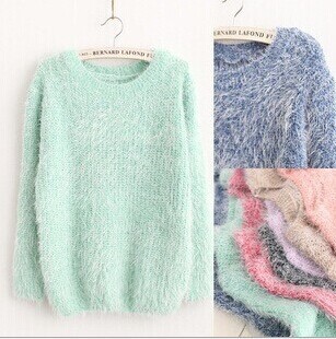 2015春秋爆款韓版寬松女士馬海毛長毛絨純色圓領(lǐng)套頭毛衣廠家直銷 /