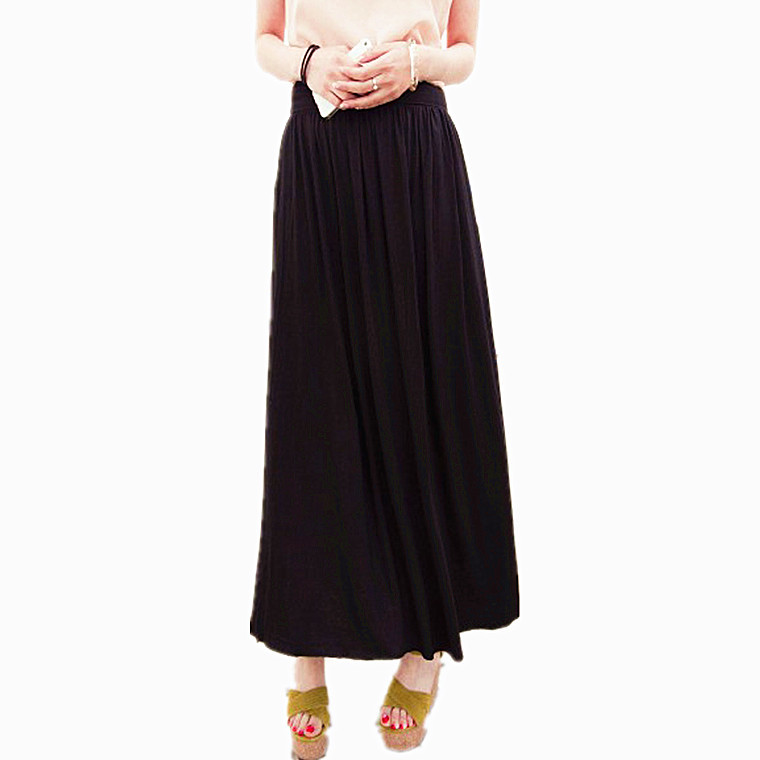 2015歐美風(fēng)純色垂墜感莫代爾拖地高腰長(zhǎng)裙大擺裙半身裙 沙灘裙女 /