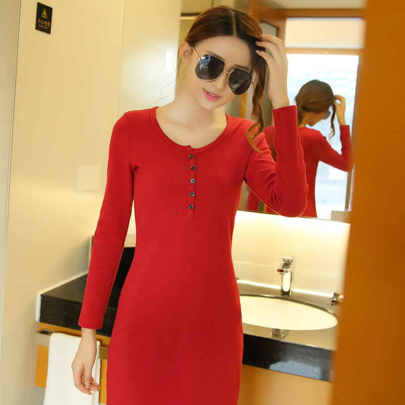 2015秋冬新款女裝純色連衣裙 通勤中長款修身長袖百搭打底裙女裙 /