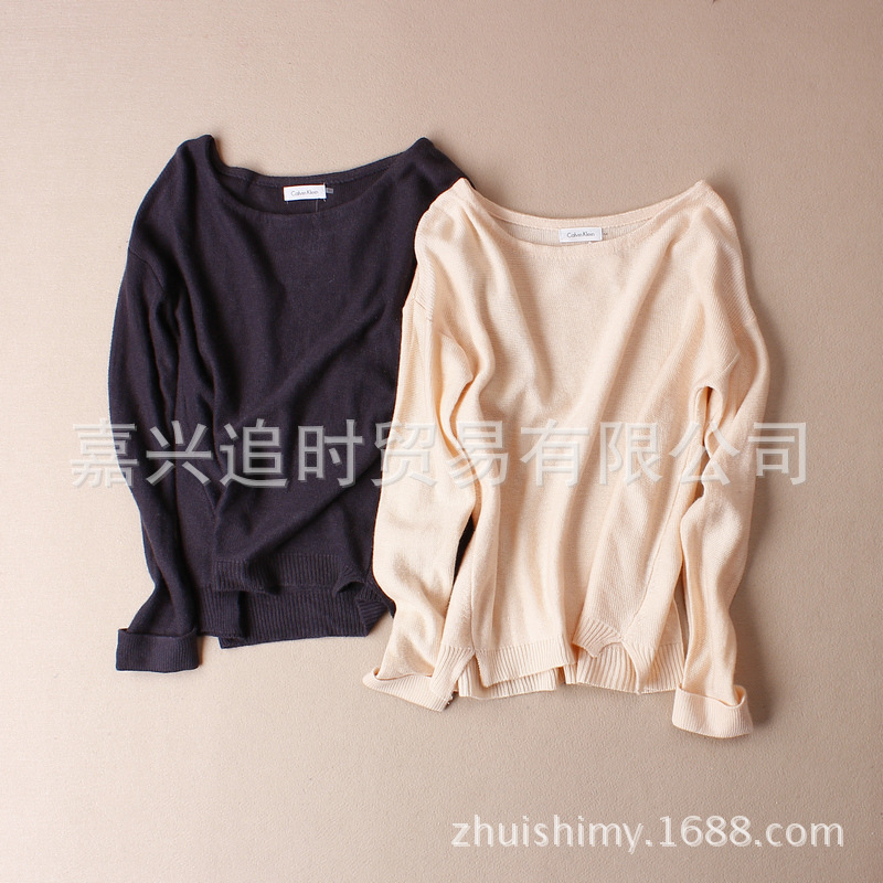 原單精品尾貨女裝秋冬新款一字領(lǐng)長袖套頭針織衫羊毛衫 /