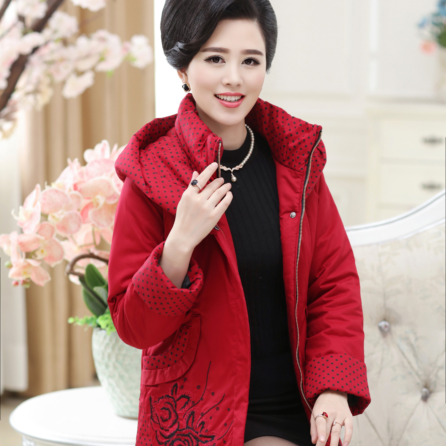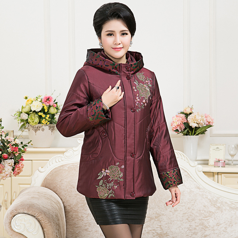 中老年女裝時尚棉衣 高檔加厚棉服 連帽棉襖外套 40-50-60歲批發 /