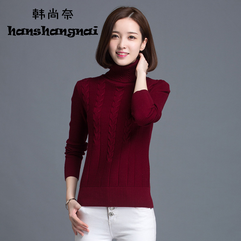 2015秋冬新款韓版修身純色麻花打底衫針織衫加厚套頭翻領毛衣女 /