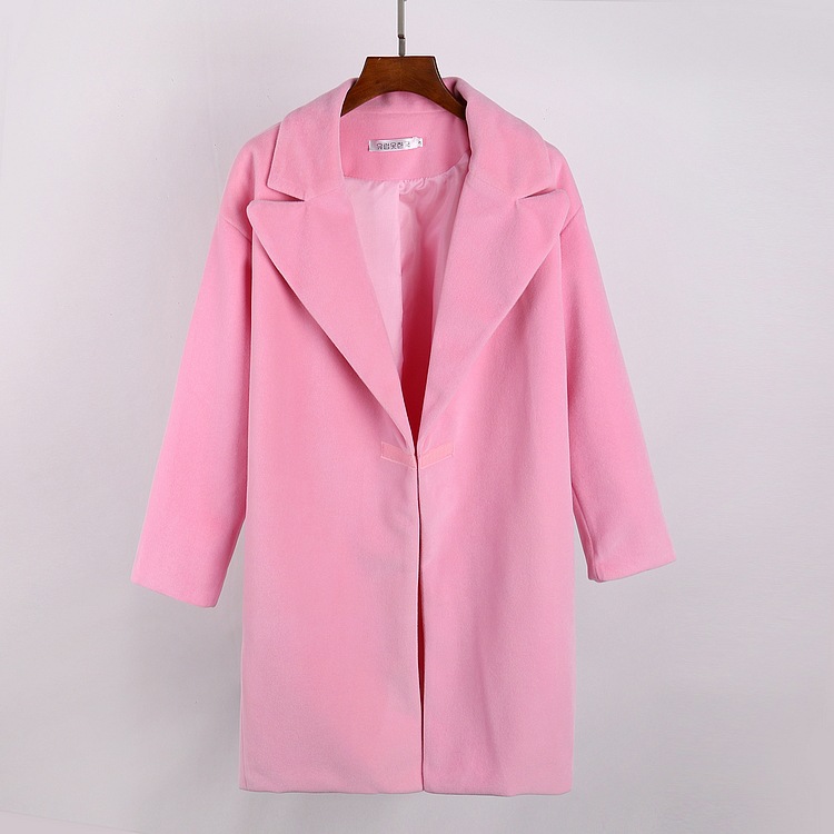 現貨 秋冬克拉戀人唐嫣米朵同款粉紅色中長款毛呢大衣外套 /