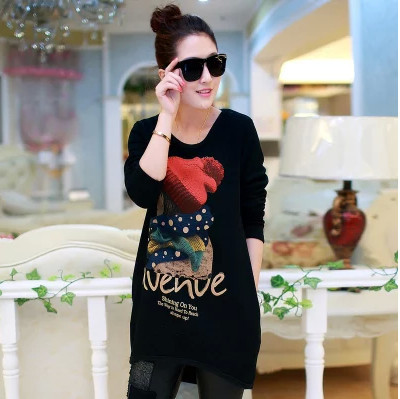 阿里巴巴批發網2015韓版印花學生衛衣寬松長袖女秋冬長款長袖t恤 /