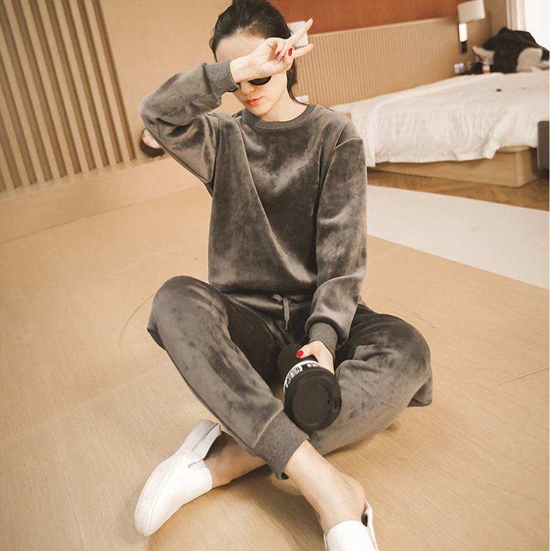 2015冬季新品上新女韓版加絨加厚套裝衛衣+長褲兩件套氣質潮 /