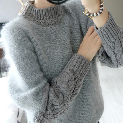 春冬韓版復古麻花袖百搭打底針織衫半高領兔毛毛衣套頭女加厚 /
