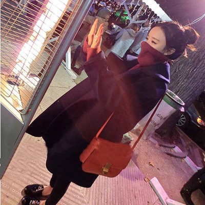 秋冬季新款加厚毛呢外套韓版寬松繭型羊毛呢子大衣中長款女 /