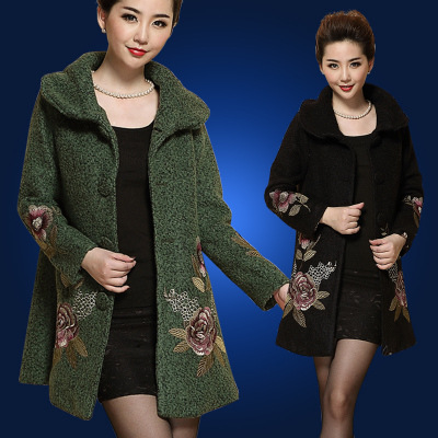 2015中老年羊絨大衣繡花媽媽裝羊毛呢加厚風衣秋冬女裝中長款外套 /