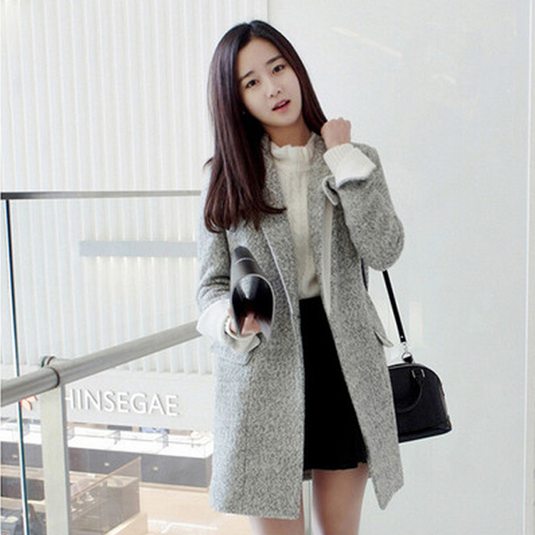 2015秋冬新款顯瘦呢子大衣女 冬裝韓版毛呢外套女中長款加厚 /
