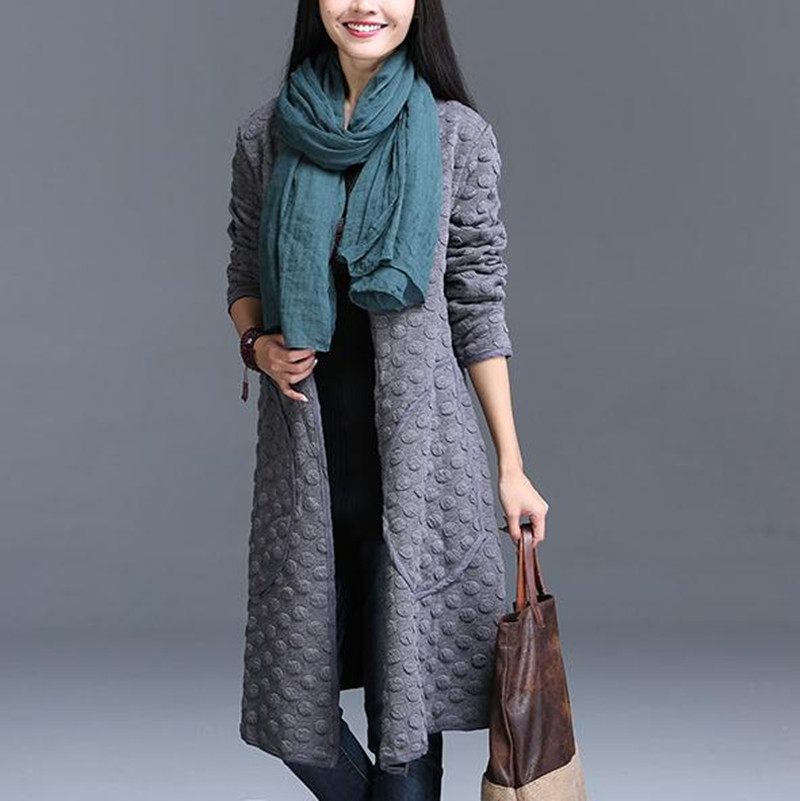 秋冬韓版純棉立體波點中長款大碼風衣精致包邊大口袋百搭開衫外套 /