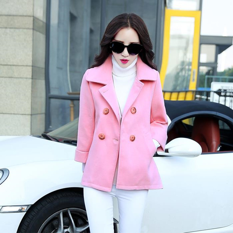 秋冬新款時尚燕尾九分袖毛呢外套短款雙排扣翻領實用插袋呢子大衣 /