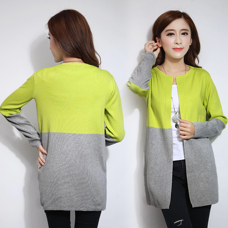 2015秋季女裝韓版女撞色毛衣外套修身中長款針織衫女開衫 /