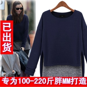 2015秋季新品大碼胖MM女裝歐美顯瘦收腰假兩件針織毛衫上衣女 /