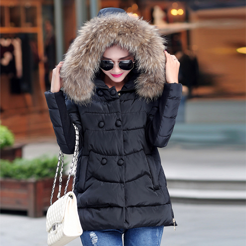 外套棉衣女2015冬季韓版女裝雙排扣裝飾連帽帶毛條中長款棉衣女 /