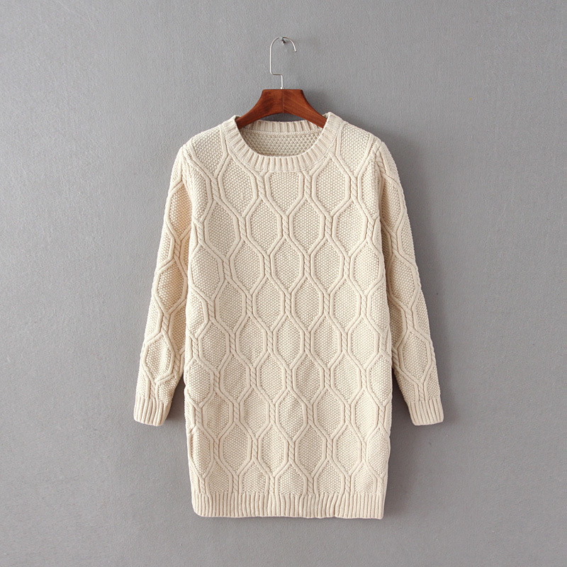 8518-韓版潮2015冬季女裝新款 純色圓領(lǐng)幾何六邊形圖案套頭毛衣 /