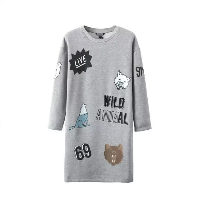 2357-歐美風(fēng)2016春季女裝新款 圓領(lǐng)長款卡通圖案印花長袖加絨衛(wèi)衣 /