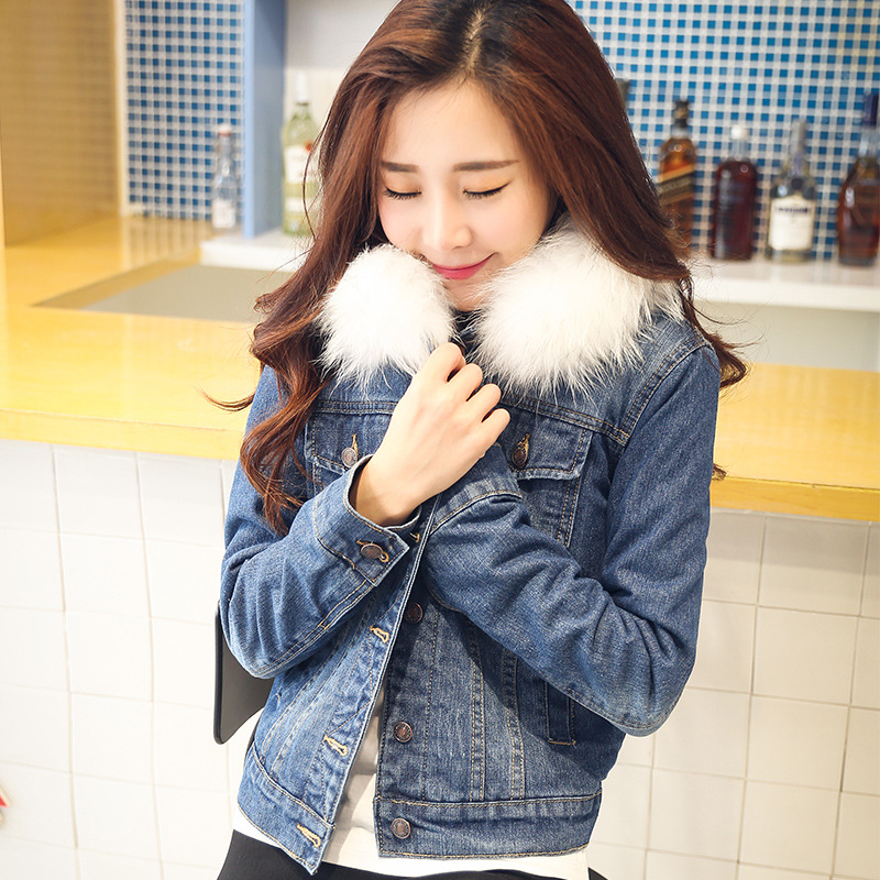 實拍 深色-2秋冬超保暖厚實羊羔毛牛仔短外套 牛仔棉衣配毛領 /