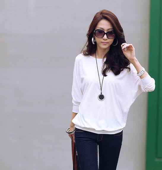 韓版秋裝新品時尚性感圓領長袖寬松T恤 /