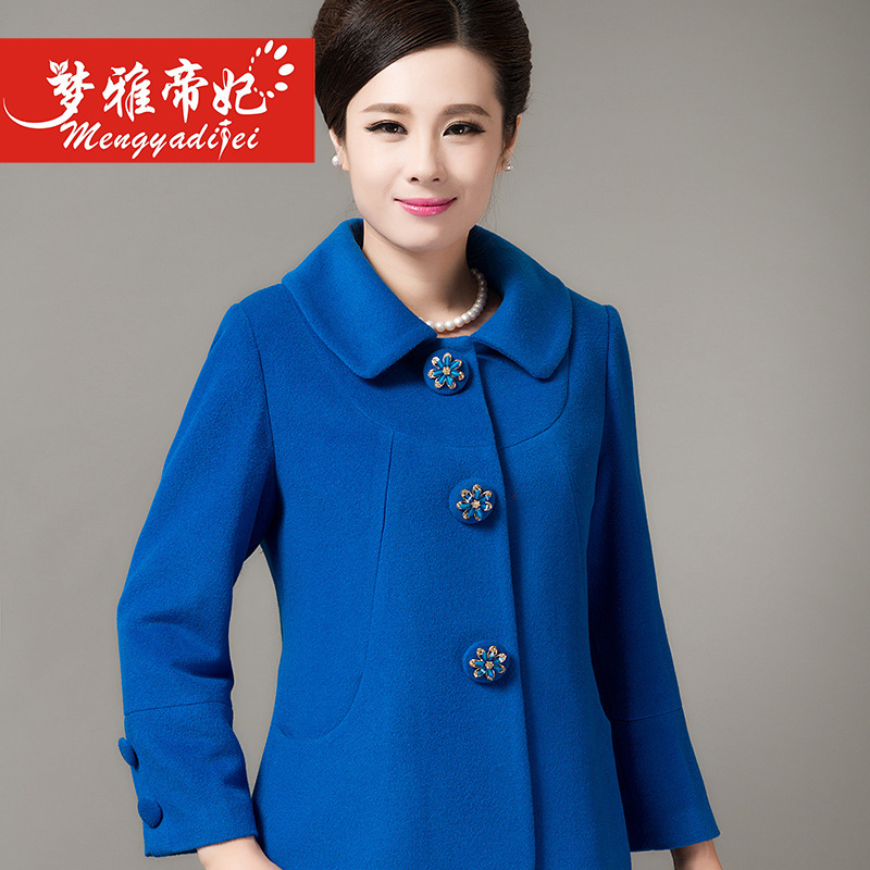 簡介: 貨源類別現貨 產地北京 品牌夢雅帝妃 貨號603 款式類別女式風衣、大衣 風格韓版 適合季節春秋季 圖案純色 流行元素立體裝飾 適用年齡段45-55 主圖來源實拍有模特 上市年份/季節2015秋季 面料名稱羊毛,錦綸 主面料成分羊毛 主面料成分的含量82(%) 顏色黑色,大紅,金黃,寶蘭 尺碼M,L,XL,2XL,3XL,4XL 庫存類型整單 領型V字領 袖長
