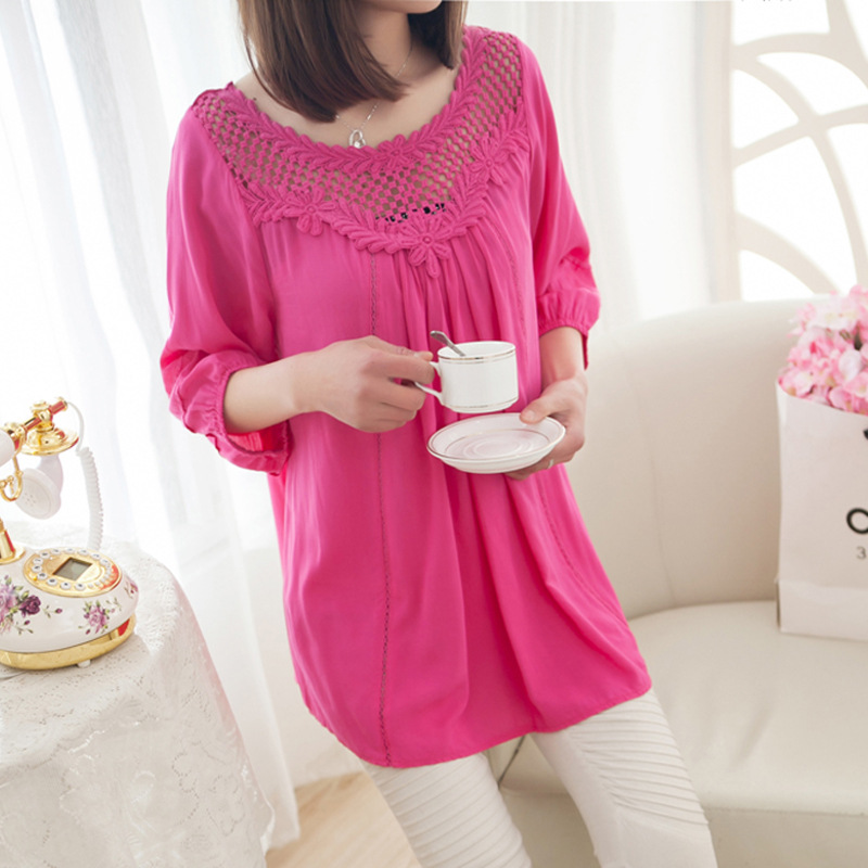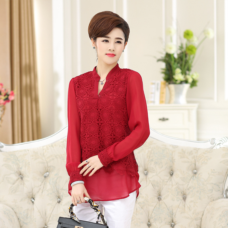 中老年春裝新款長袖蕾絲襯衫顯瘦媽媽裝中年女T恤2015雪紡衫 /