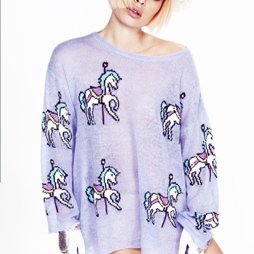 Wildfox秋冬明星同款歐美薄款寬松長袖上衣旋轉木馬毛衣針織衫女 /