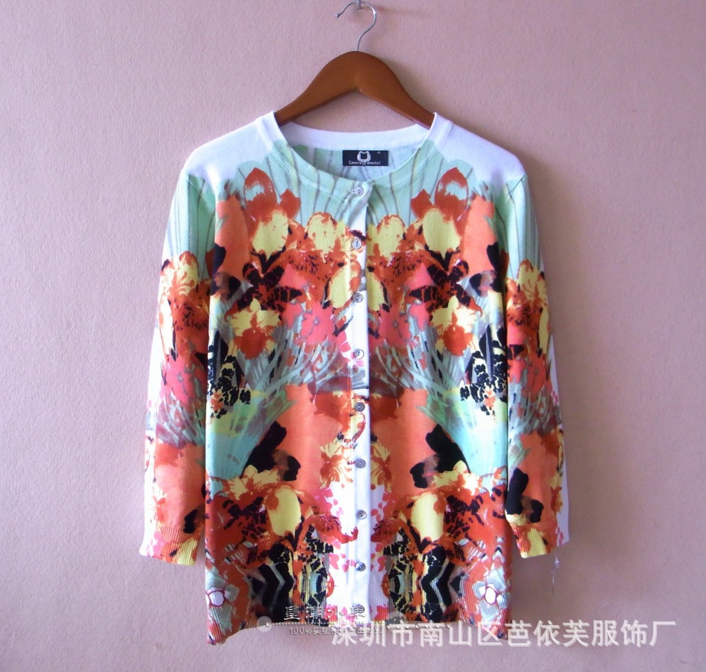 外貿原單新款韓版中老年女裝媽媽裝印花七分袖秋裝開衫批發 /