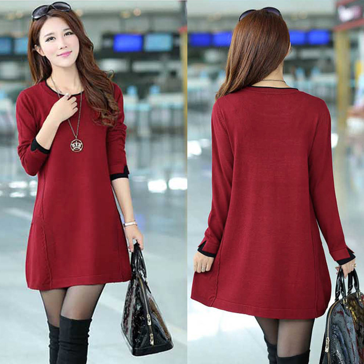 實(shí)拍秋冬中長(zhǎng)款大碼韓版連衣裙加肥加大針織打底衫寬松毛衣女 /
