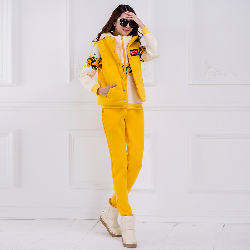 【實拍】秋冬女裝加絨加厚運動衛衣三件套韓版修身女套裝 /