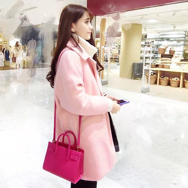 面布復合(加棉版)2015新款 櫻花粉毛尼輪廓外套 /