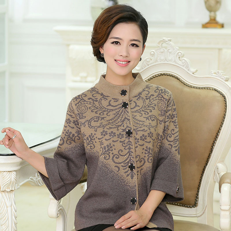 中老年女裝秋裝毛衣外套中年媽媽裝立領九分袖上衣開衫加大碼 /