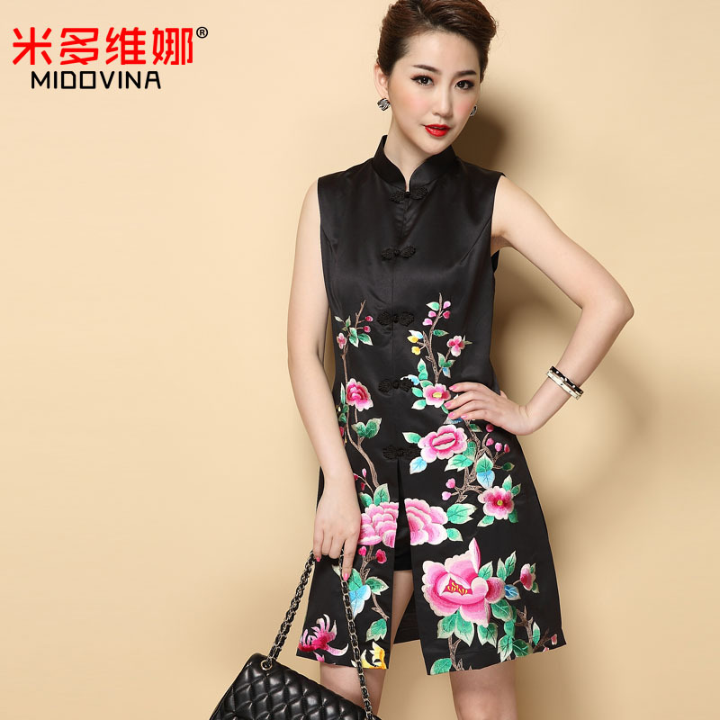 2015新款名族風(fēng)重工繡花中長款旗袍 手工盤扣復(fù)古式宮廷刺繡外套 /