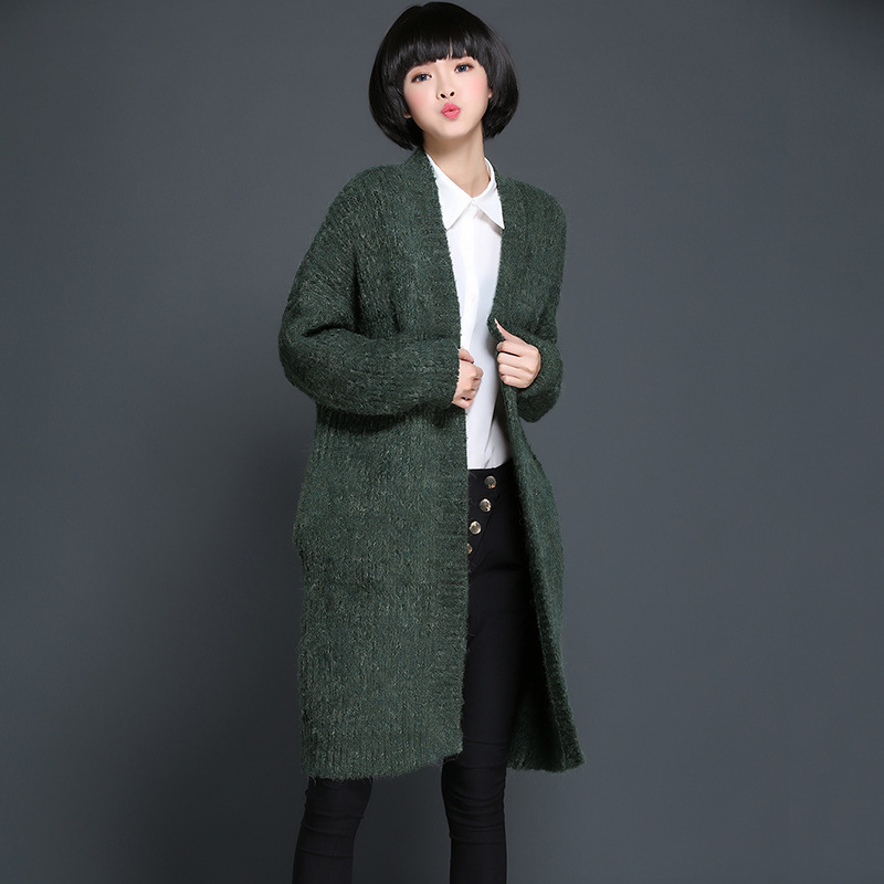 2015秋冬休閑風女裝外套新款 中長款純色長袖V字領針織開衫 /