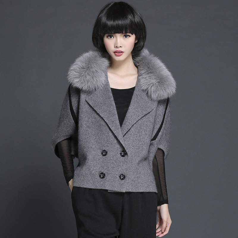 歐美風時尚百搭純色百搭狐貍毛領雙排扣女士貂絨小外套 秋冬新款 /