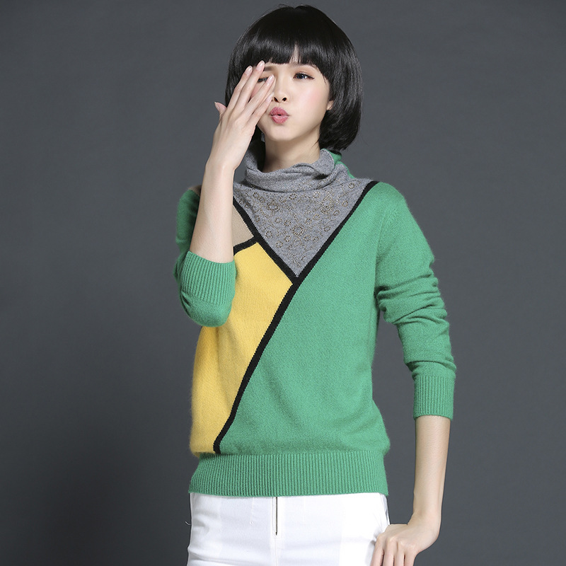 秋冬百搭時尚撞色堆堆領長袖女士套頭貂絨保暖毛衣 廠家直銷 /